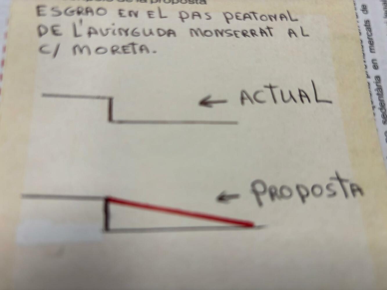 Descripció de la proposta: Esgraó en el pas de vianants de l’Avinguda Montserrat al carrer Moreta.